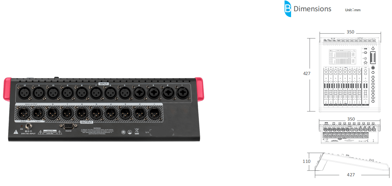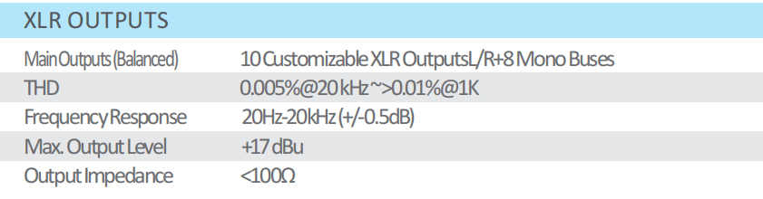 9 x Mix buses (8 AUX buses, 1 MAIN bus);