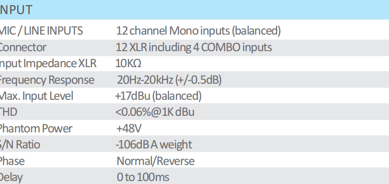 1 x 31-band GEQ (Graphic Equalizer) on inputs;