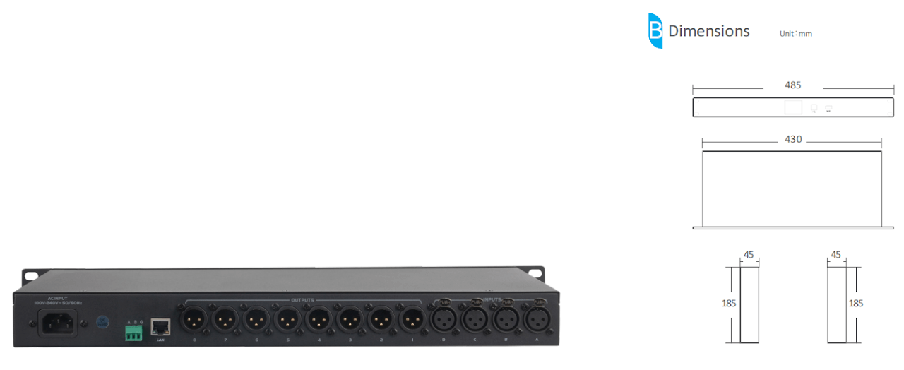 Input channels support gate adjustment (range: -120~-20dB optional);