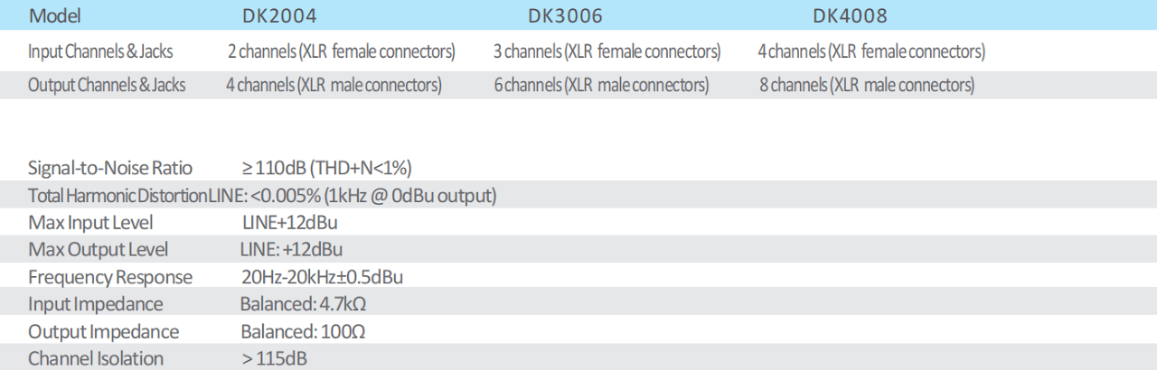 Adjustable slope for variable high/low-pass IIR filters:Bessel: 12dB/18dB/24dB/36dB/48dB per octave; (supports Linkwitz-Riley configuration) Butterworth: 6dB/12dB/18dB/24dB/36dB/48dB per octave;
